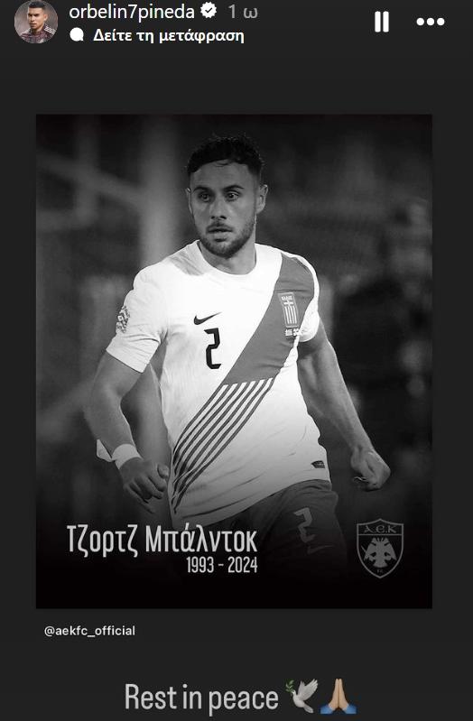 Στην λίστα των ποδοσφαιριστών που δημοσίευσαν για τον άδικο χαμό του Τζορτζ Μπάλντοκ, έρχεται να προστεθεί και ο Μεξικάνος αστέρας της ΑΕΚ, Ορμπελίν Πινέδα. Ο ταλαντούχος κεντρικός χαφ, μέσω του προφίλ του στο instagram, είπε το δικό του αντίο στον διεθνή ποδοσφαιριστή του Παναθηναϊκού ανεβάζοντας σχετική φωτογραφία με το μήνυμα «Rest in peace».
