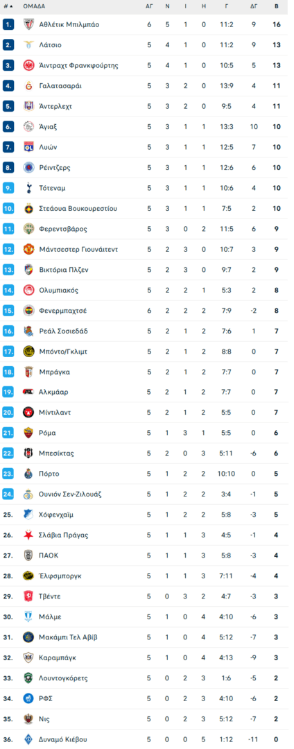 Ο ΠΑΟΚ, ο Ολυμπιακός και ακόμα 32 ομάδες κάνουν απόψε (12/12) το έκτο-από τα συνολικά οκτώ- βήμα τους στη League Phase του Europa League.