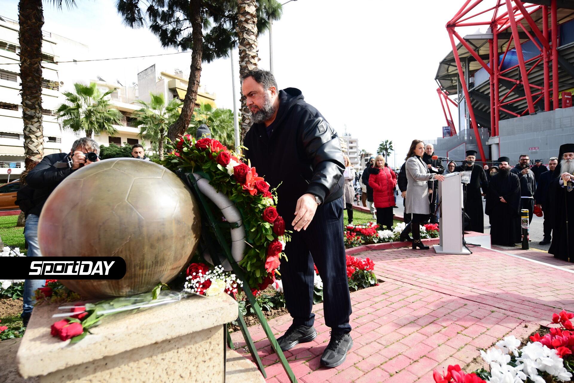 Παρών στο μνημόσυνο της ανείπωτης τραγωδίας της 8ης Φεβρουαρίου του 1981 ήταν και ο ηγέτης της ΠΑΕ Ολυμπιακός, Βαγγέλης Μαρινάκης, ο οποίος κατέθεσε στεφάνι.