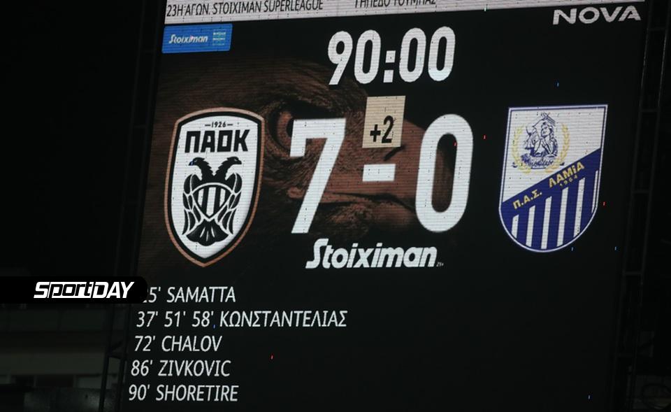 Ναι, μην το ψάχνετε, είναι ρεκόρ! Η νίκη του ΠΑΟΚ με 7-0 επί της Λαμίας, με το χατ τρικ του Γιάννη Κωνσταντέλια, είναι η ευρύτερη που έχει σημειώσει ποτέ στην 66χρονη πορεία του στην Α’ Εθνική/Super League!