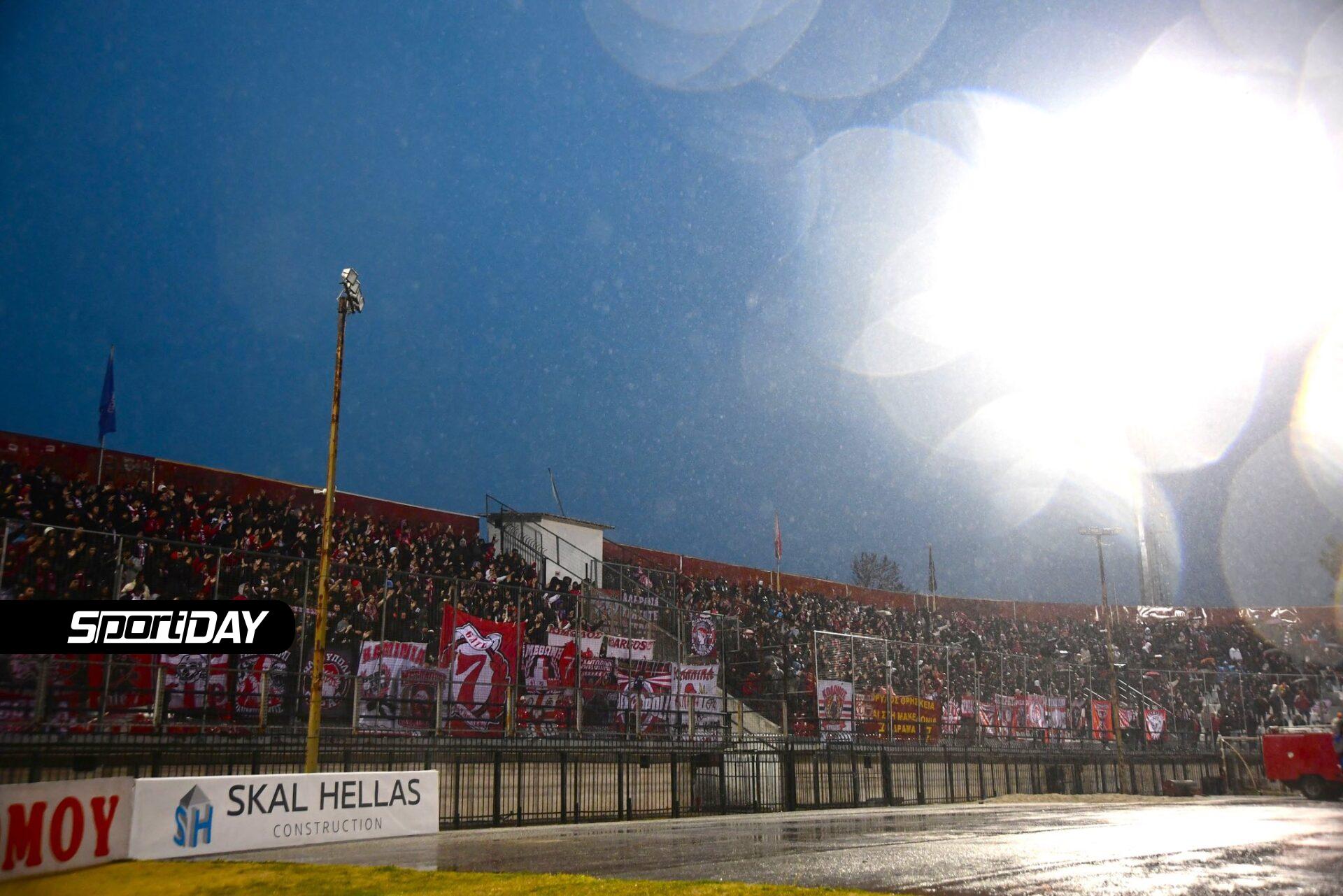 Αλλο ένα γήπεδο βάφτηκε στα χρώματα του Ολυμπιακού, αφού 3.000 οπαδοί της ομάδας ακολούθησαν στις Σέρρες για να υποστηρίξουν την προσπάθεια των «ερυθρόλευκων» να επιστρέψουν στην κορυφ΄΄η του βαθμολογικού πίνακα.