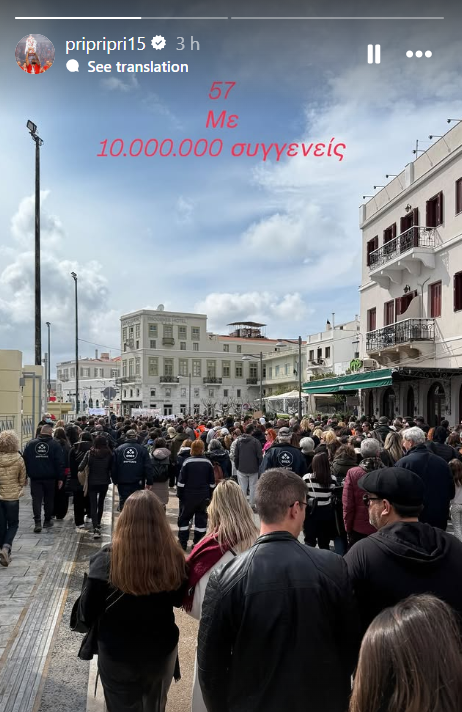 Από τους ανθρώπους του μπάσκετ, δυνατά ακούστηκε και η φωνή του Γιώργου Πρίντεζη. Ο εμβληματικός αρχηγός βρέθηκε σε κάποια από τις εκατοντάδες συγκεντρώσεις και ανέβασε σχετικό story, γράφοντας με νόημα: «57 με 10.000.000 συγγενείς».