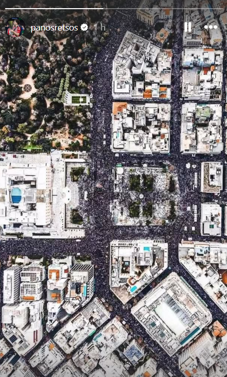Φωτογραφία από τη μεγαλειώδη συγκέντρωση στην Αθήνα, χωρίς λόγια, ανέβασε και ο αρχηγός του Ολυμπιακού, Παναγιώτης Ρέτσος.