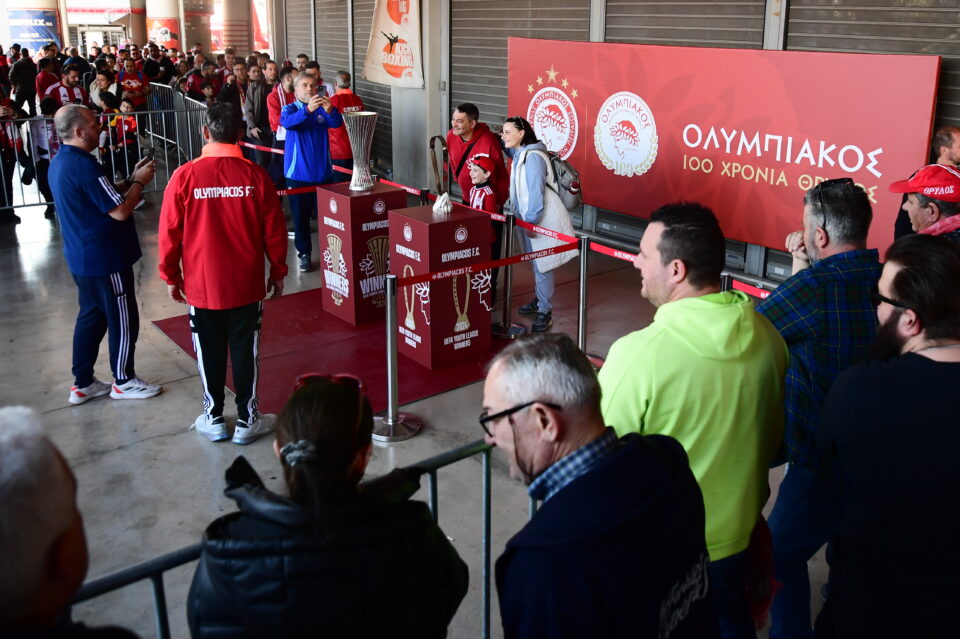 Ο κόσμος από το πρωί συρρέει στο γήπεδο Καραϊσκάκη για τη μεγάλη γιορτή του Ολυμπιακού.