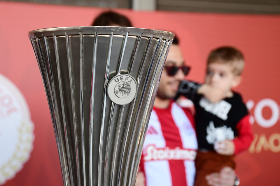 Εντυπωσιακό και πρωτοποριακό σκηνικό για τα ελληνικά δεδομένα, με το… κερασάκι στην τούρτα να είναι οι παρουσία των δύο ιστορικών τροπαίων που κατέκτησε ο Ολυμπιακός την περασμένη σεζόν. Οι κούπες των Conference και Youth League είναι ήδη από χτες σε έναν ειδικά διαμορφωμένο χώρο, ώστε να μπορούν οι φίλοι της ομάδας να φωτογραφηθούν μαζί τους, με μερικούς μάλιστα να το κάνουν φορώντας τη νέα συλλεκτική φανέλα που μόλις είχαν αγοράσει.