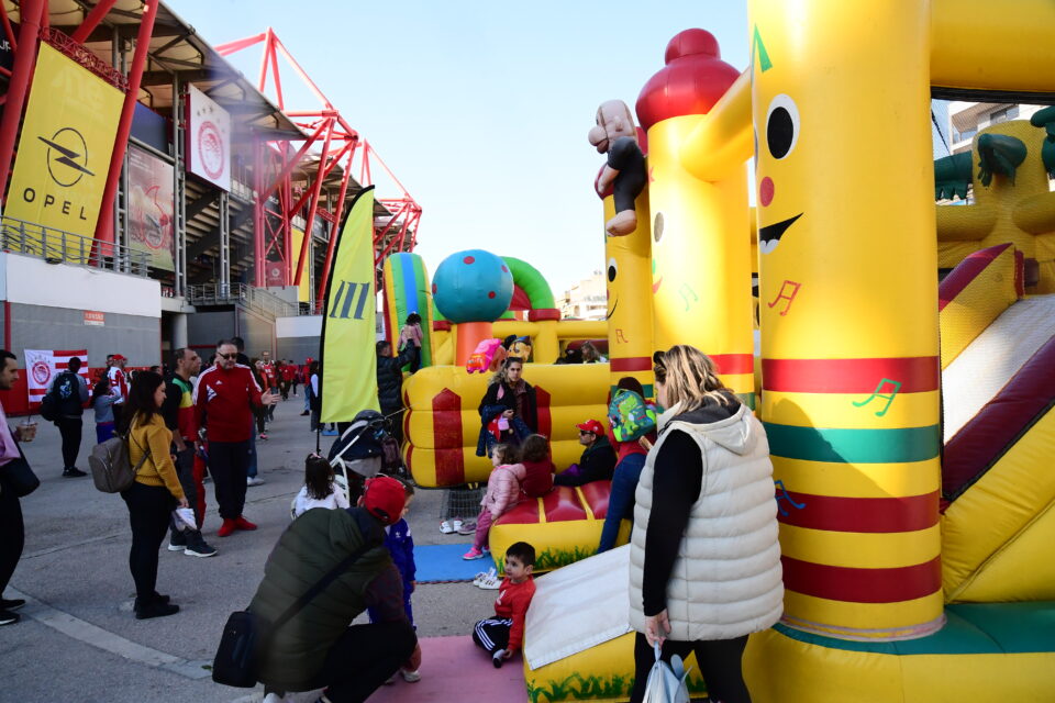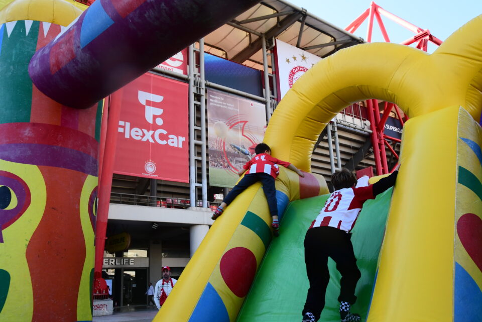 Στους χώρους γύρω από το «Γεώργιος Καραϊσκάκης» έχει στηθεί ένα υπέροχο θεματικό πάρκο, ευρωπαϊκών προδιαγραφών με διάφορα παιχνίδια για τα παιδιά. Το πάρκο λειτουργεί και σήμερα, από τις 10:00, με πλήθος κόσμου να βρίσκεται ήδη εκεί για να διασκεδάσει σε φόντο ερυθρόλευκο!