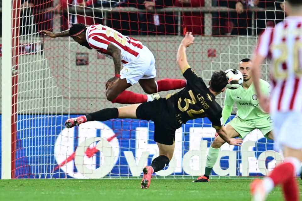 Στο 42′, οι Πειραιώτες είχαν εξαιρετική ευκαιρία, με τον Κοστίνια να σεντράρει συρτά και τον Τσικίνιο να εκτελεί άτσαλα, παρότι ήταν πολύ κοντά στην εστία.
