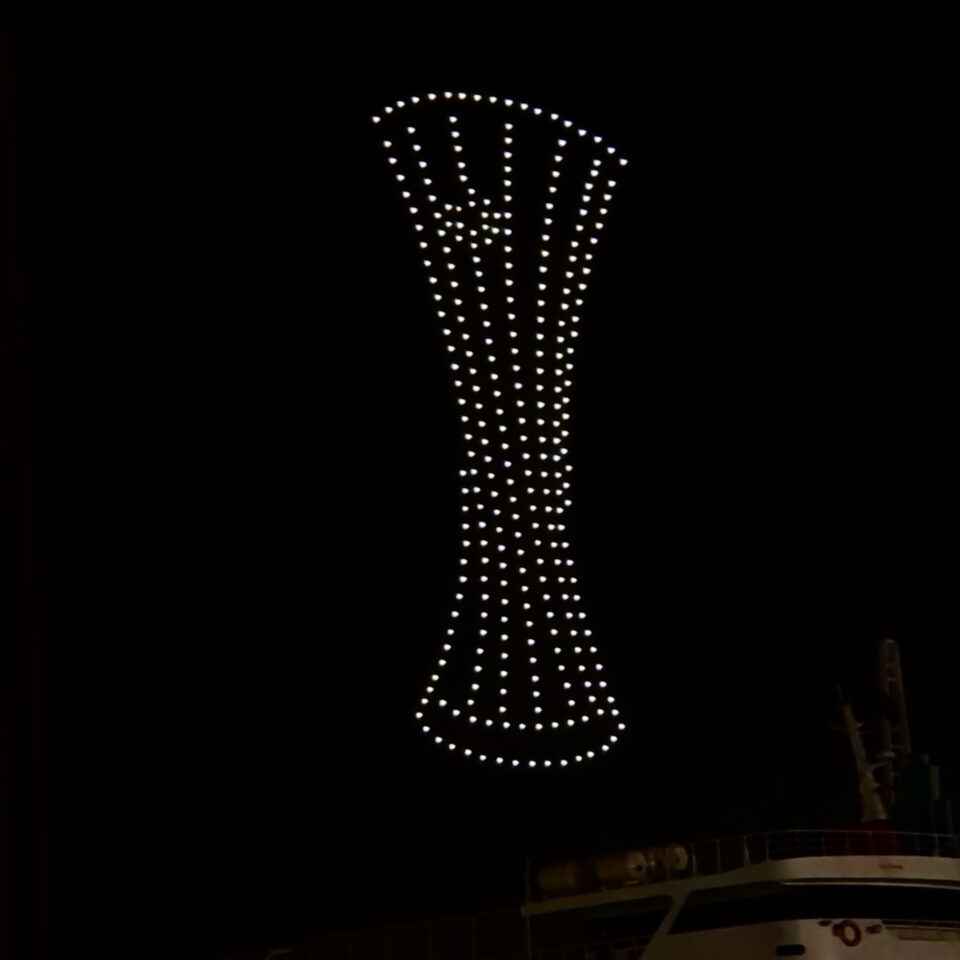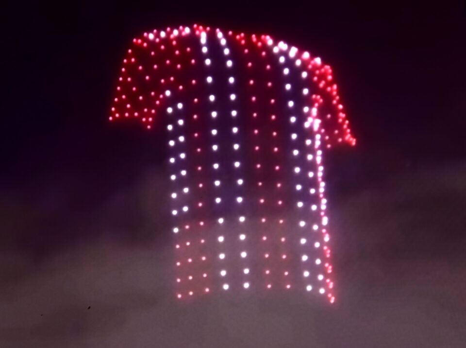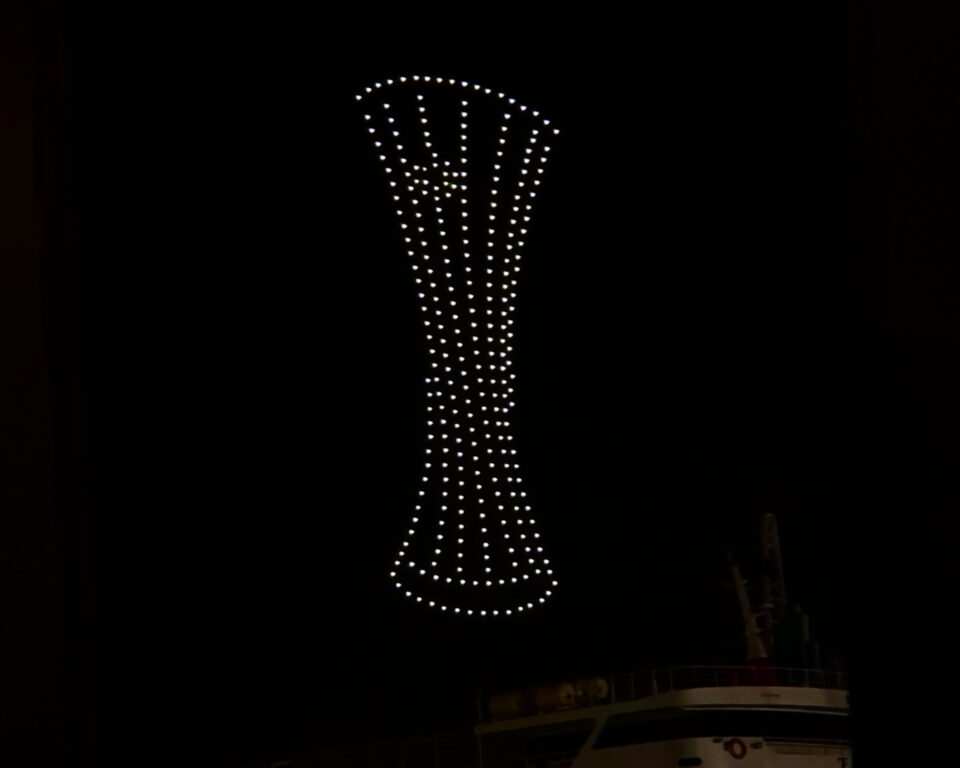 Στον ουρανό του Πειραιά, πάνω απ’ το λιμάνι, «παρήλασαν» για περίπου 15 λεπτά σε εντυπωσιακούς σχηματισμούς: Το σήμα του Ολυμπιακού, το όνομα της ομάδας, ένα δαφνοστεφανωμένο σήμα που έγραφε πάνω τον αριθμό «100», το σήμα του Conference League που κατέκτησαν πέρσι οι «ερυθρόλευκοι», αλλά και το UEFA Youth League, ο «Θρυλέων» κι ένα μήνυμα στα αγγλικά που έγραφε «We Keep On Dreaming» (μετ. «Συνεχίζουμε να ονειρευόμαστε»), με τον κόσμο της πειραιώτικης ομάδας να γιορτάζει τη συμπλήρωση ενός αιώνα ζωής της αγαπημένης του ομάδας.