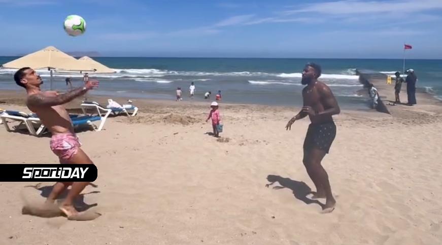 Ολυμπιακός: Τσικίνιο και Ροντινέι το 'ριξαν στο ποδοβόλεϊ στην Κρήτη