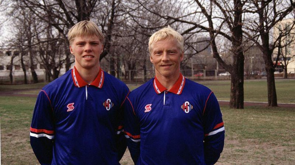 Ο Έιντουρ Γκούντγιονσεν (αριστερά) με τον πατέρα του Άρνορ, την εποχή που ήλπιζαν ακόμα ότι θα τους δινόταν η ευκαιρία να αγωνιστούν μαζί σε κάποιον αγώνα της Εθνικής Ισλανδίας.