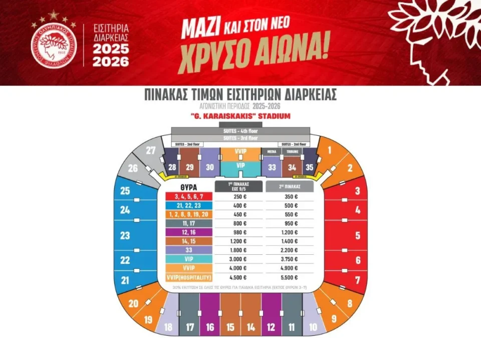 «Από σήμερα (2/5) στις 16:00 έως την Παρασκευή 9/5 στις 11:00 όλοι οι φίλαθλοι μπορούν να αγοράσουν ελεύθερα τα εισιτήρια διαρκείας τους, με τις τιμές του πρώτου πίνακα.