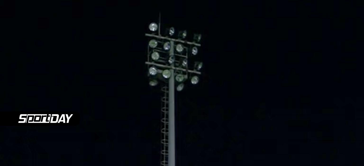 Ο πυλώνας έσβησε και λίγο αργότερα άναψε ξανά για να συνεχιστεί η αναμέτρηση. Η διακοπή ήταν περίπου 10 λεπτά.