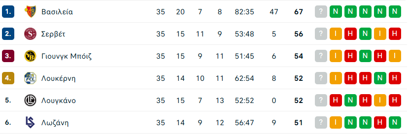 Θετικά νέα ήρθαν και από την Ελβετία που η Σέρβετ κατάφερε και κράτησε την διαφορά της από την Γιουνγκ Μπόιζ στους δύο βαθμούς, απομένοντας 3 αγωνιστικές ακόμα.
