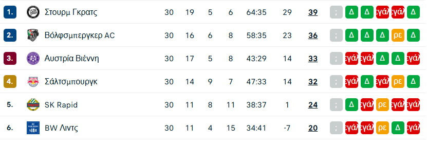 Από την Αυστρία τα θετικά νέα ήρθαν ύστερα από την νίκη της Βόλφσμπεργκερ με 2-0 τις Λιντζ και άφησε πίσω της με 4 βαθμούς την Σάλτσμπουργκ.