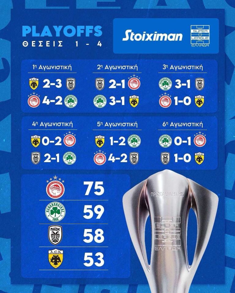 Γελάστε τώρα… με τα χάλια σας, τώρα που έπεσε η αυλαία και γίνεται η αποτίμηση της χρονιάς. Με … 16-17 και 22 βαθμούς διαφορά πήραμε το Πρωτάθλημα. Έγραψε Ιστορία η ΑΕ6άρα , με 0 βαθμούς σε 6 ματς των πλέι οφ. Μέχρι πριν το γκολ του Τσικίνιο στο σπίτι της Κατερίνας Λιόλιου, η διαφορά μας ήταν στο -2!!! Μου είχατε και ελπίδες ότι θα ανατρεπόταν η κατάσταση στα πλέι οφ! Τρομάρα σας. Τι δεν βλέπατε ρε αντικειμενικοί και μη;