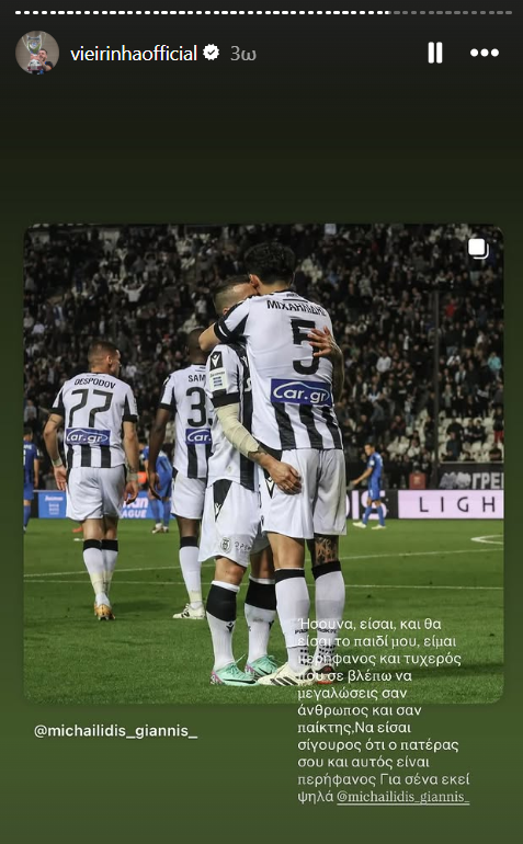 Βιεϊρίνια σε Μιχαηλίδη: «Ο πατέρας σου θα είναι περήφανος για εσένα από εκεί ψηλά»