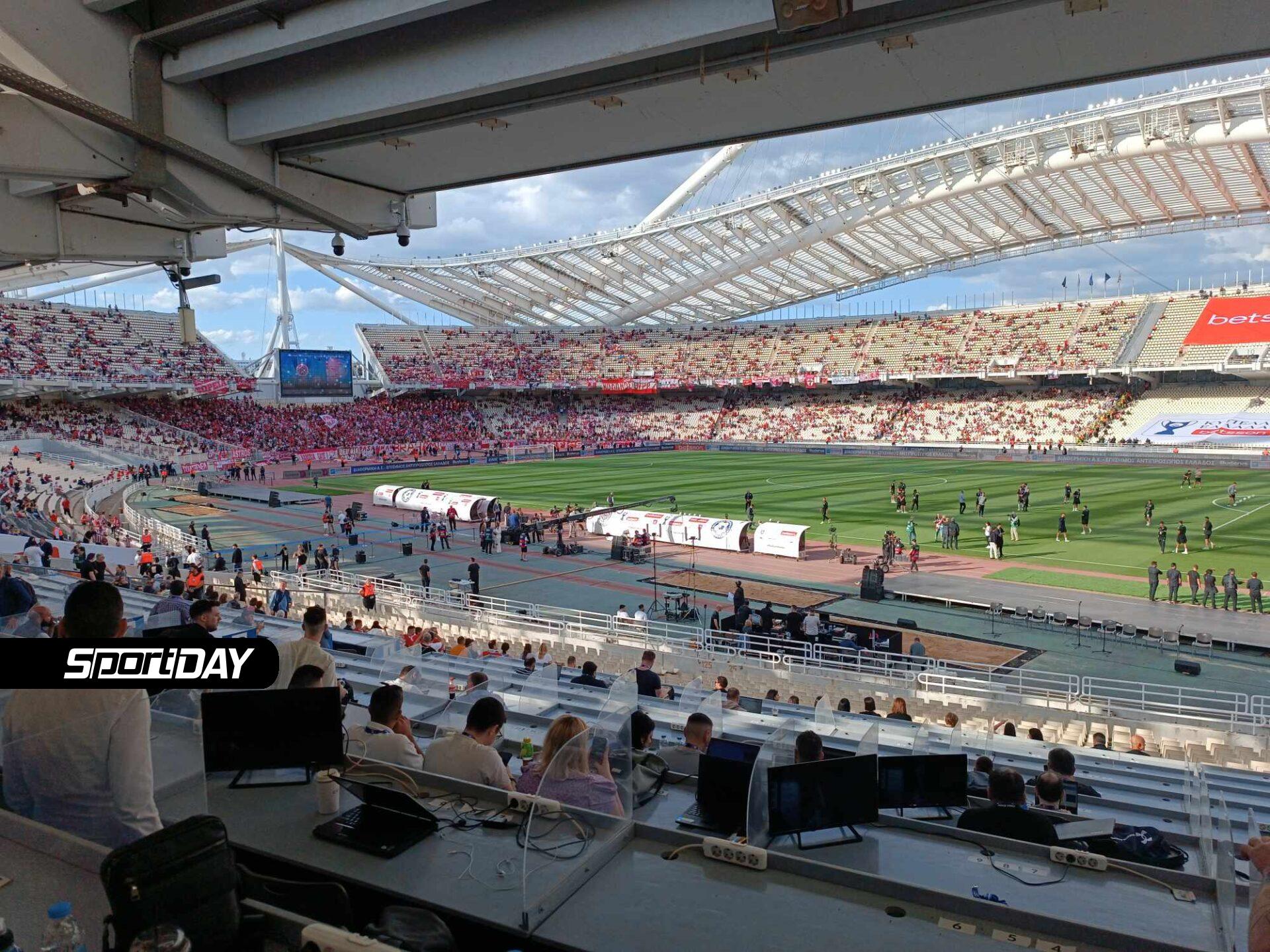Το κλίμα γιορτής στο ΟΑΚΑ μιάμιση ώρα πριν τον τελικό του κυπέλλου.