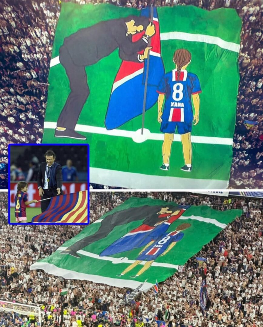 Ο Λουίς Ενρίκε, με βλέμμα στραμμένο στον ουρανό, φορούσε την κόρη του στην καρδιά του και στο στήθος του. Η μικρή Χάνα, που «έφυγε» το 2019, στα μόλις 9 της χρόνια, ήταν εκεί. Απεικονισμένη να κρατά τη σημαία της Παρί, δίπλα στον πατέρα της. Σαν να έτρεχε μαζί του, σαν να φώναζε στις εξέδρες, σαν να του ψιθύριζε: «Μπαμπά, είμαι περήφανη».