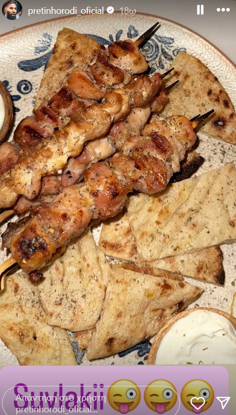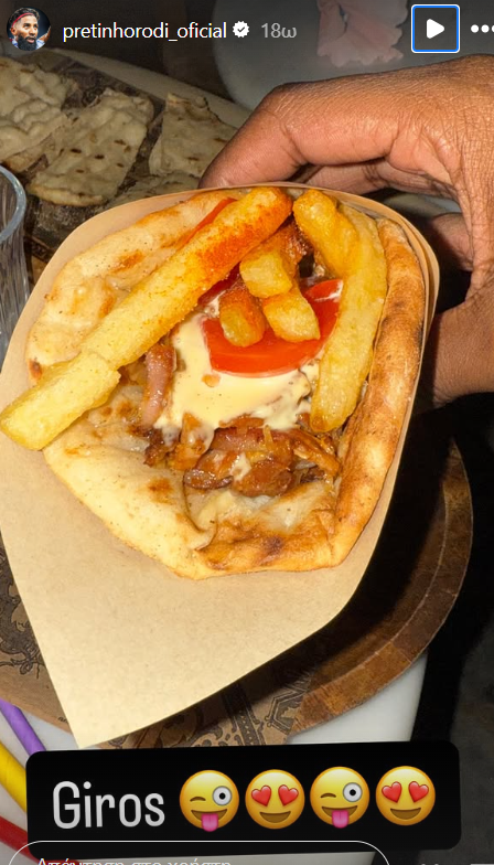 Ο Βραζιλιάνος μπακ του Ολυμπιακού μάλιστα με story στο Instagram, σύστηνε στους διαδικτυακούς ακολούθους του το «γύρο» και το «σουβλάκι».