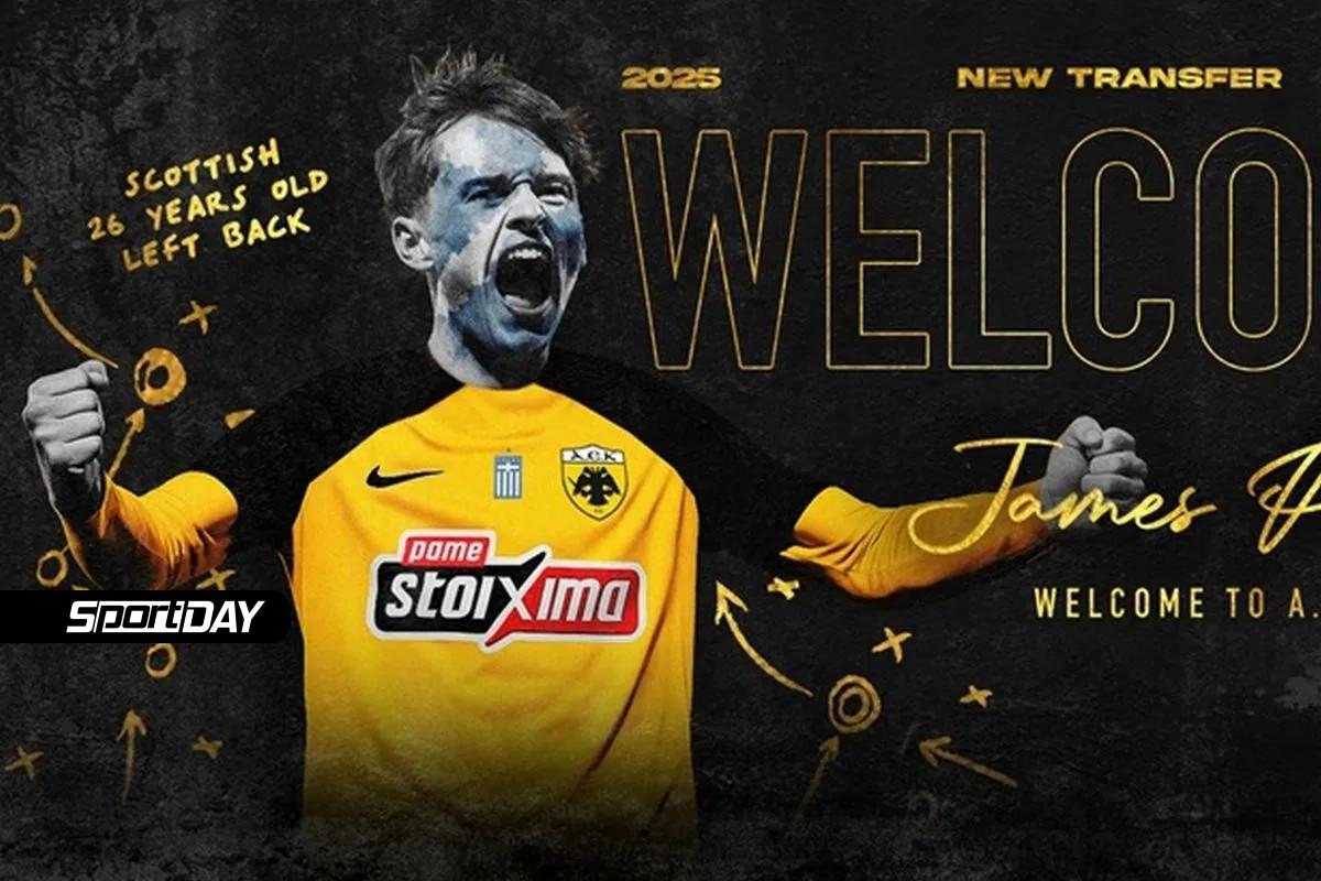 «Η ΠΑΕ ΑΕΚ ανακοινώνει την απόκτηση με μεταγραφή από τη σκωτσέζικη Χαρτς, του αριστερού μπακ Τζέιμς Πενράις (James Penrice).