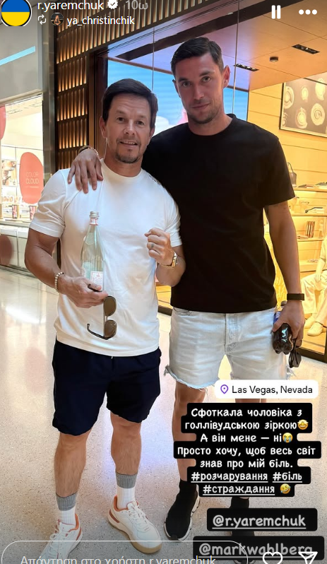 Μάλιστα ο Ουκρανός είχε και μια αναπάντεχη συνάντηση με τον Χολιγουντιανό σταρ, Μαρκ Γουόλμπεργκ, με τον οποίο και φωτογραφήθηκε.