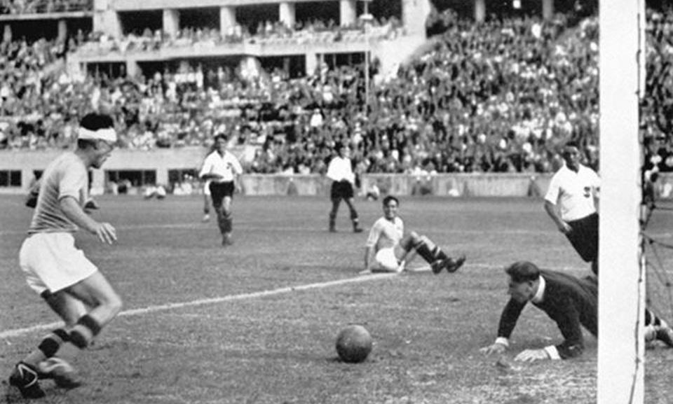 Η φάση του δεύτερου γκολ της Ιταλίας στον τελικό του Βερολίνου. Ο Φρόσι (αριστερά), με δεμένο κεφάλι απ’ τον τραυματισμό του σε προηγούμενο αγώνα, είναι έτοιμος να σπρώξει την μπάλα στα δίχτυα.