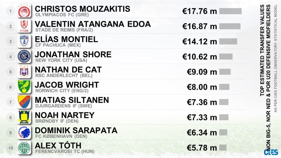 Η νέα του πρωτιά, αφορά την αξία. Συγκεκριμένα, είναι ο αμυντικός μέσος κάτω από 20 ετών με τη μεγαλύτερη αξία εκτός των πέντε μεγάλων πρωταθλημάτων, της Ολλανδίας και της Πορτογαλίας. Πίσω του αφήνει παίκτες από τη Β’ Γαλλίας, το Βέλγιο, τις ΗΠΑ, τη Β’ Αγγλίας και πολλά άλλα πρωταθλήματα που φημίζονται για την παραγωγή ταλέντων.