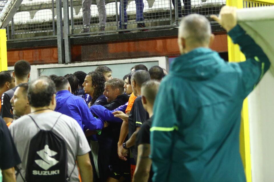 Οι δύο παίκτες μπορεί να αποβλήθηκαν, όμως συναντήθηκαν ξανά στη φυσούνα, όπου ξέσπασε νέος «γύρος» έντασης ανάμεσα σε ποδοσφαιριστές και ανθρώπους των δύο ομάδων.