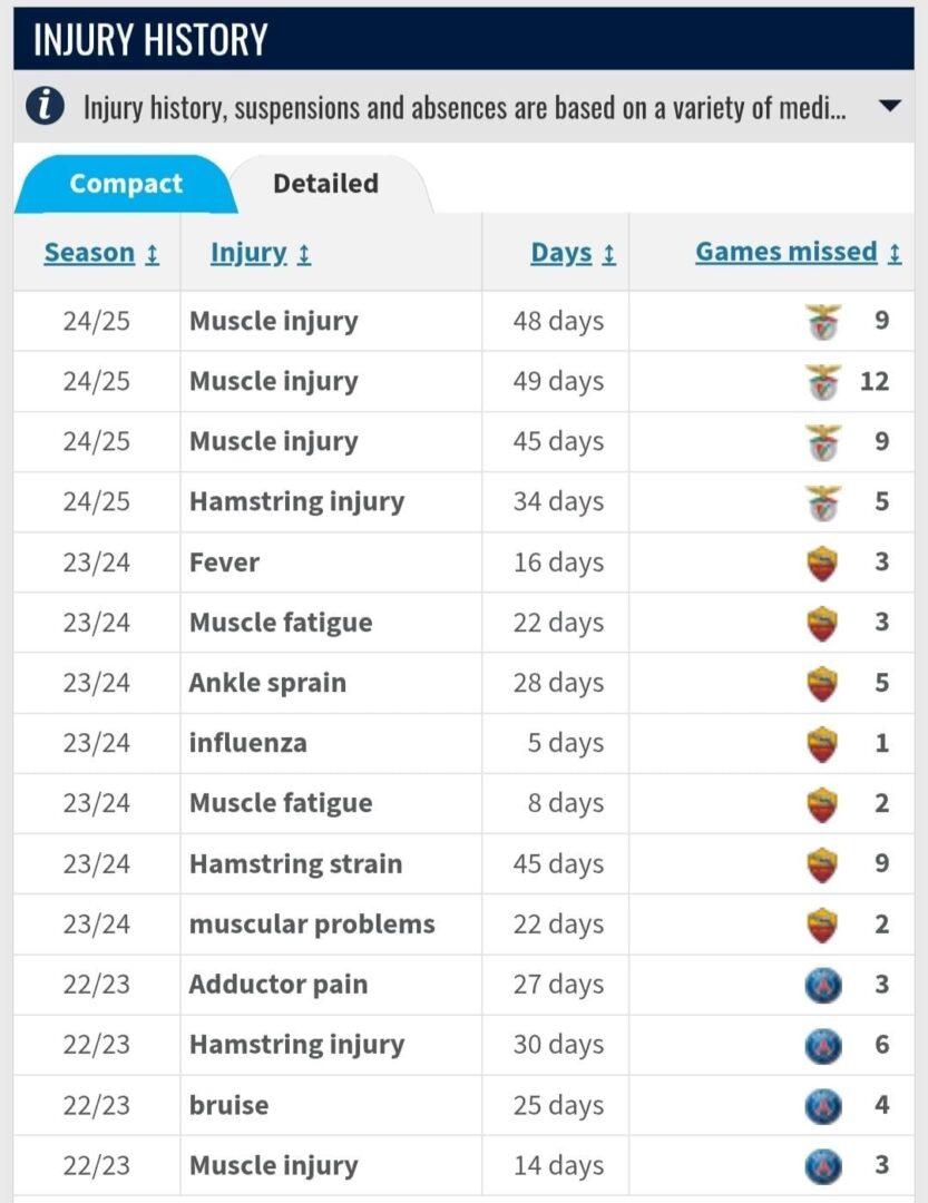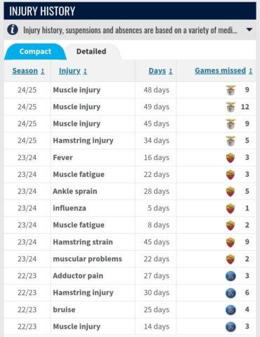 Μια τριετία γεμάτη μυϊκούς τραυματισμούς και συμμετοχές που μεταφράζονται σε 20λεπτα.