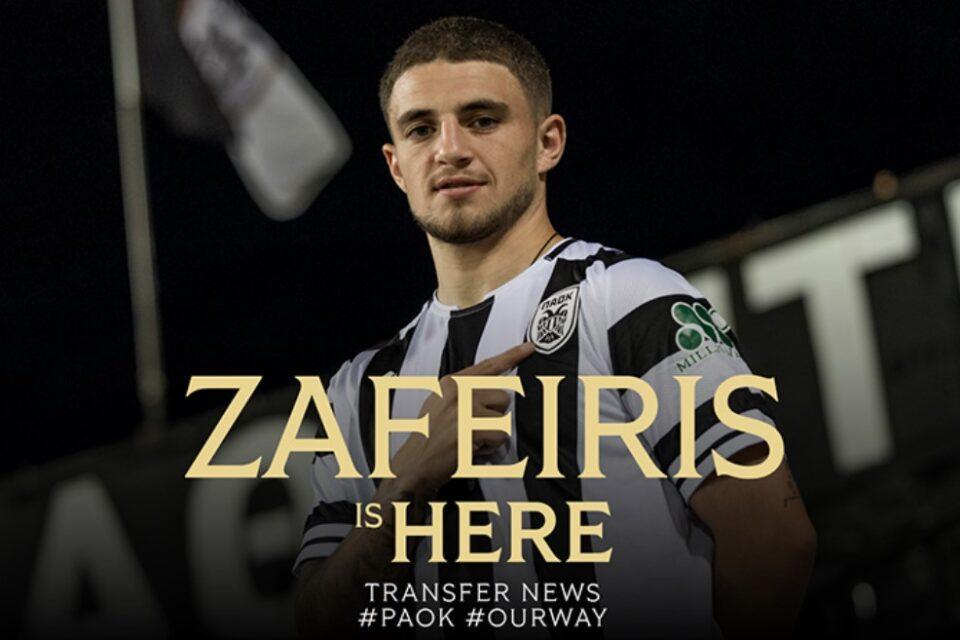«Η ΠΑΕ ΠΑΟΚ ανακοινώνει την μεταγραφή του Χρήστου Ζαφείρη από την Σλάβια Πράγας. Ο ποδοσφαιριστής υπέγραψε συμβόλαιο συνεργασίας με τον Δικέφαλο μέχρι τις 31.12.2029, θα παραμείνει δανεικός στην Σλάβια για τους επόμενους μήνες και θα ενταχθεί στην ομάδα μας στις 02.01.2026.