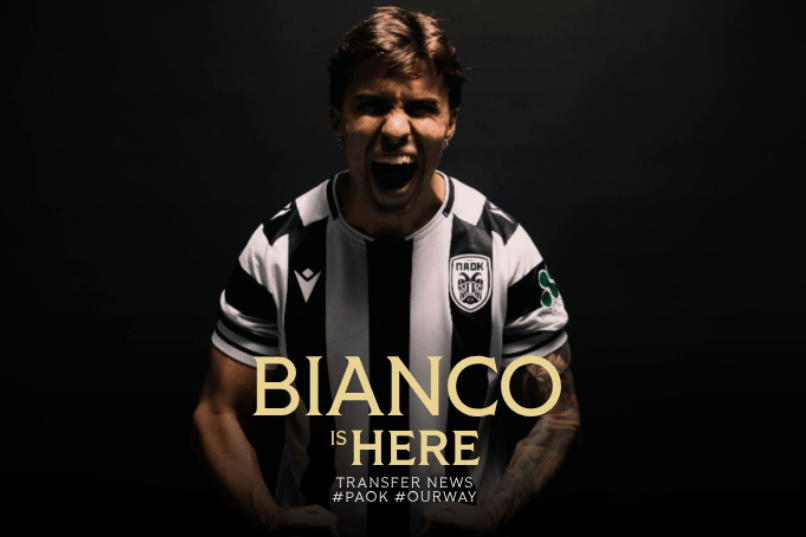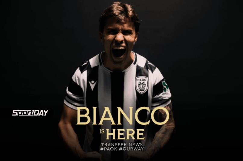 “Η ΠΑΕ ΠΑΟΚ ανακοινώνει την απόκτηση του Αλεσάντρο Μπιάνκο από τη Φιορεντίνα, με τη μορφή δανεισμού, με οψιόν αγοράς. Ο Ιταλός μέσος θα φοράει τη φανέλα με τον αριθμό 22.