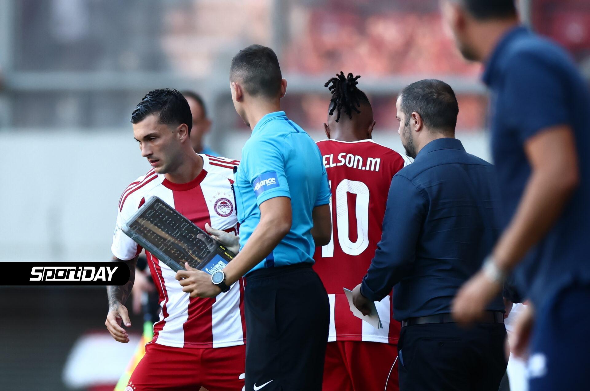 Ο εξτρέμ του Ολυμπιακού αποχώρησε στο 17ο λεπτό του αγώνα κόντρα στον Πανσερραϊκό.
