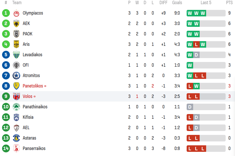 Αυτή είναι η βαθμολογία της Σούπερ Λιγκ μετά τα τρία πρώτα παιχνίδια της 3ης αγωνιστικής