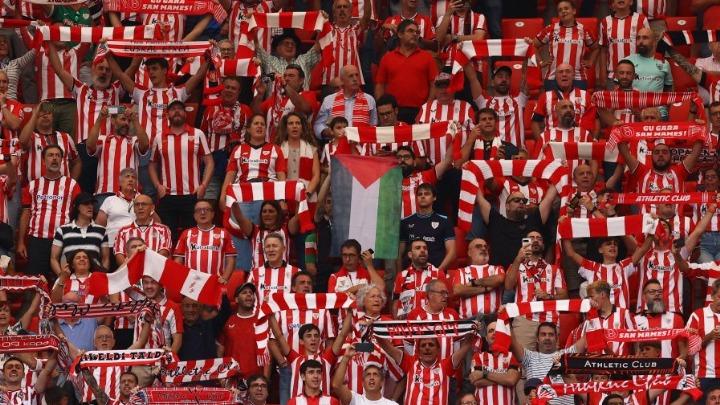 Παρά τις απειλές των κυρώσεων από την LaLiga ή την UEFA, οι υποστηρικτές των Παλαιστινίων είναι πολλοί στην χώρα των Βάσκων, ενώ το Ισραήλ συνεχίζει τη στρατιωτική του επιχείρηση στην Γάζα. Είναι χαρακτηριστικό ότι την περασμένη Τρίτη (16/9), κατά την διάρκεια του αγώνα της Αθλέτικ Μπιλμπάο με την Αρσεναλ για το Champions League, πολλοί φίλαθλοι των γηπεδούχων κρατούσαν παλαιστινιακές σημαίες, ενώ σ΄ένα πανό γραμμένο στην γλώσσα των Βάσκων, υπήρχε το μήνυμα: «Θα είμαστε στο πλευρό σας τώρα και μέχρι το τέλος»…