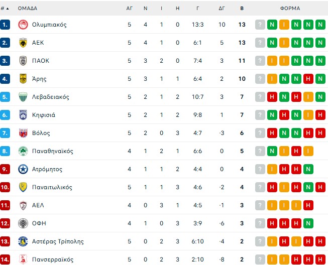H βαθμολογία της Super League: Ολυμπιακός και ΑΕΚ οδηγούν την κούρσα, 8ος ο Παναθηναϊκός