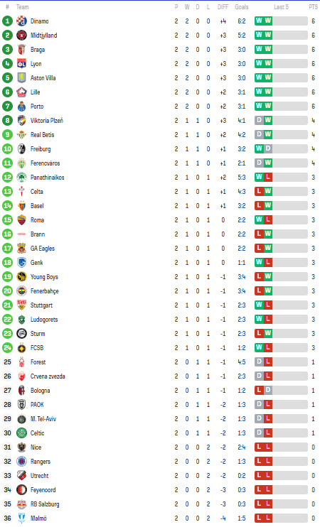 Γιουρόπα Λιγκ: Η βαθμολογία μετά τις ήττες Παναθηναϊκού και ΠΑΟΚ