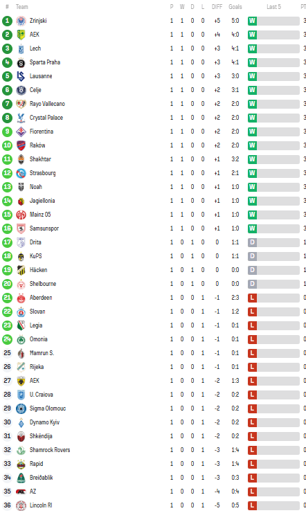 Αυτή είναι η… πρώτη βαθμολογία του Κόνφερενς Λιγκ μετά την -κακή- πρεμιέρα της ΑΕΚ.