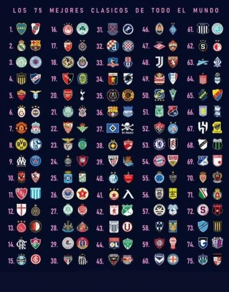 Να σημειωθεί πως το κορυφαίο ντέρμπι στον κόσμο είναι αυτό της Μπόκα Τζούνιορς με τη Ρίβερ Πλέιτ στην Αργεντινή, ενώ ακολουθεί το Ρεάλ Μαδρίτης – Μπαρτσελόνα και στην τρίτη θέση το Σέλτικ – Ρέιντζερς.