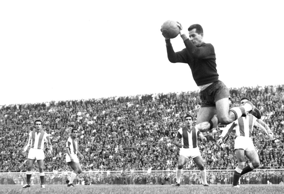 Ο Κώστας Βαλλιάνος ίπταται το 1964 σε αγώνα ανάμεσα στον Ολυμπιακό και τον Εθνικό στο κατάμεστο «Γ. Καραϊσκάκης».