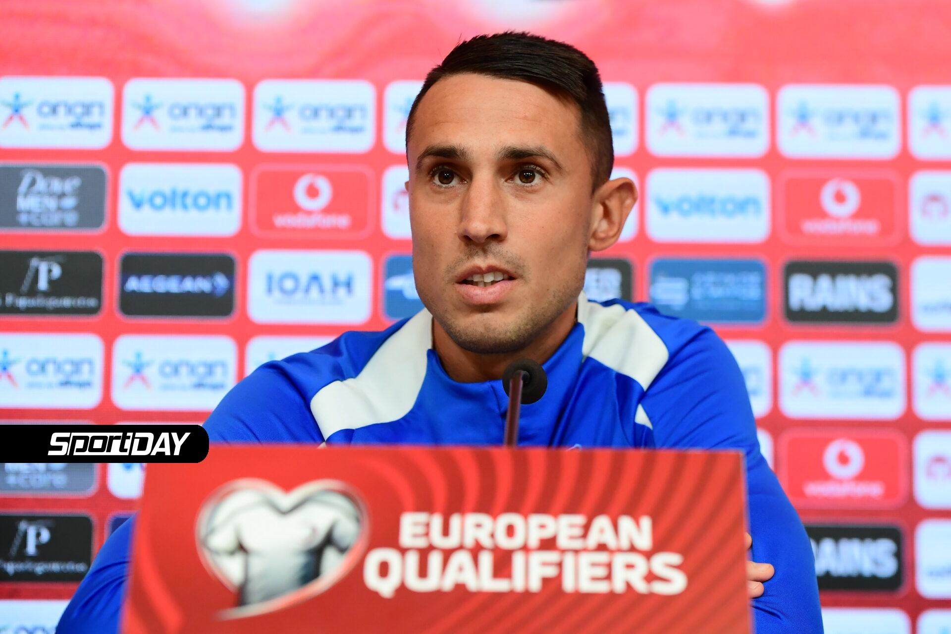 Για το κίνητρο που υπάρχει εν όψει των δύο τελευταίων παιχνιδιών της προκριματικής φάσης: “Όταν φοράς αυτή τη φανέλα θέλεις να κερδίσεις τα παιχνίδια. Θέλεις να κερδίσεις για σένα και για όλη την Ελλάδα”.