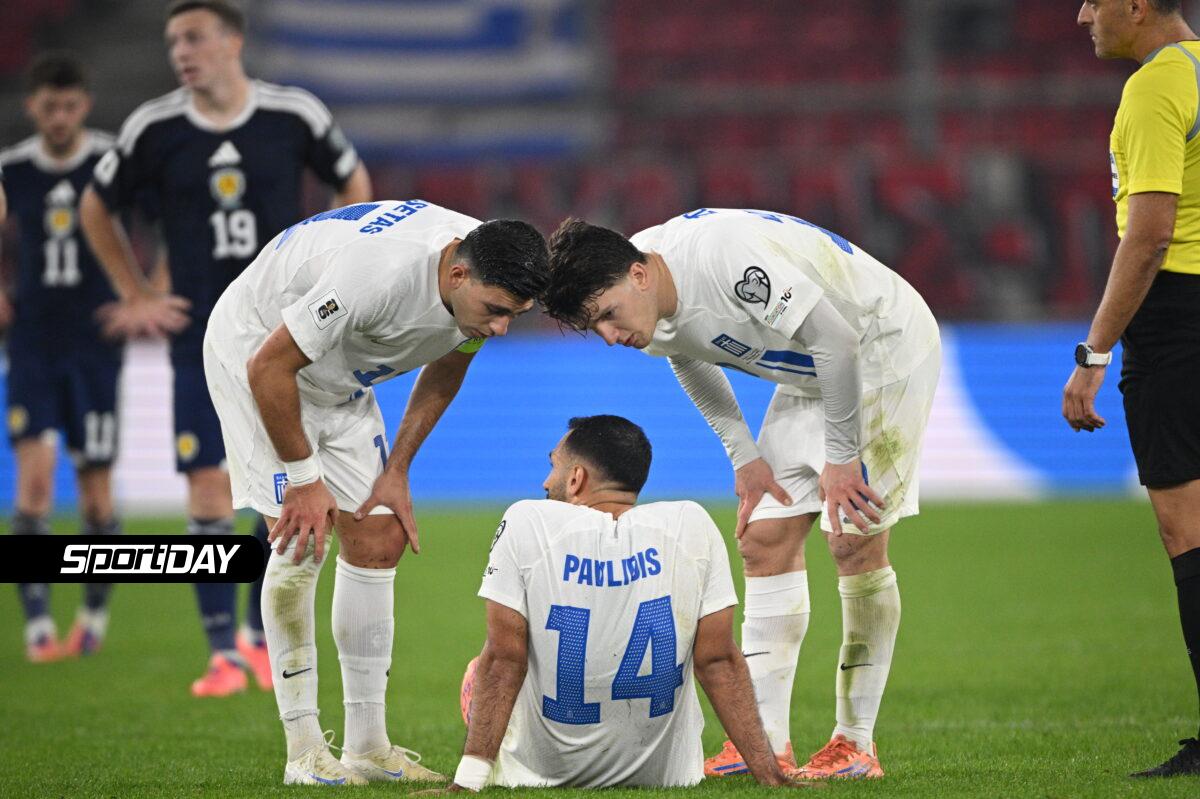 Οι Βαγγέλης Παυλίδης, Δημήτρης Γιαννούλης και Τάσος Μπακασέτας τέθηκαν εκτός πλάνων για διαφορετικούς λόγους. Ο Παυλίδης αποχώρησε τραυματίας από το ματς με τη Σκωτία στο 43’, με το ιατρικό τιμ να κρίνει πως δεν πρέπει να υπάρξει ρίσκο. Ο Γιαννούλης ταλαιπωρείται από ενοχλήσεις που τον άφησαν εκτός αποστολής και από το χθεσινό παιχνίδι, ενώ ο Μπακασέτας αποβλήθηκε στο 84’ και ούτως ή άλλως δεν θα είχε δικαίωμα συμμετοχής.