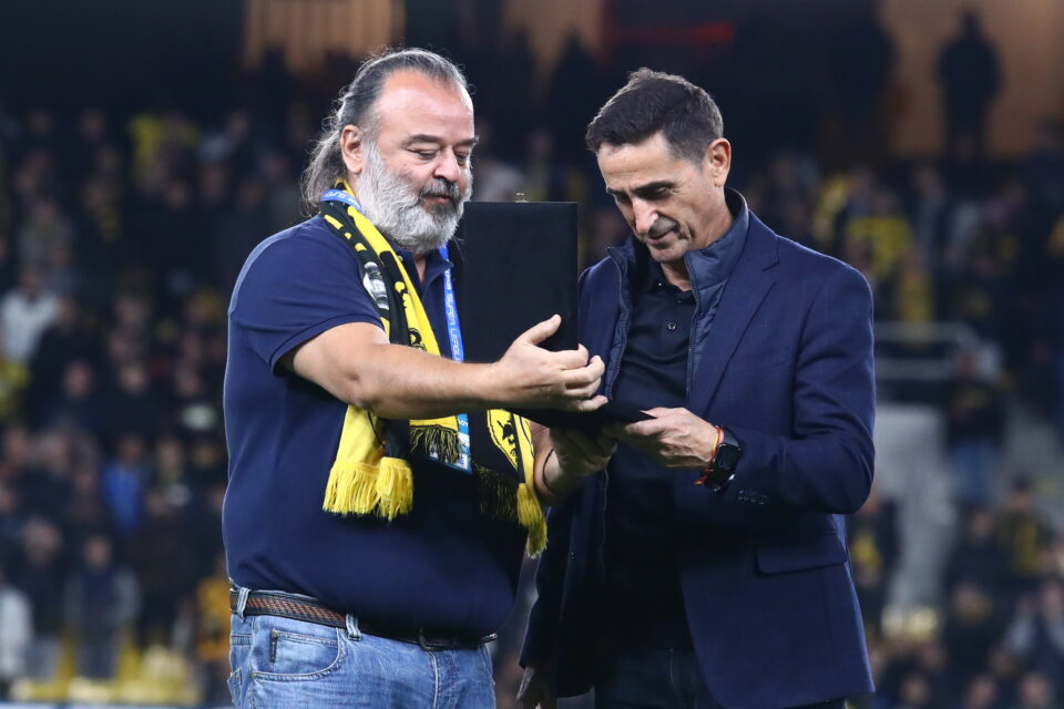 Ο Μανόλο Χιμένεθ βραβεύτηκε από την ΑΕΚ και τον Μάριο Ηλιόπουλο για όσα προσέφερε στην Ένωση σε τέσσερις θητείες.