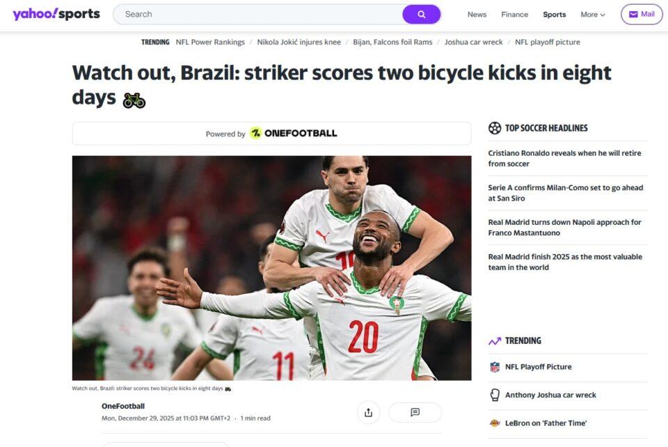 Ο Αγιούμπ Ελ Καμπί έγινε ξανά viral σε όλο τον πλανήτη με τη νέα γκολάρα με ψαλιδάκι για το Μαρόκο στο Κύπελλο Εθνών Αφρικής και το yahoo προειδοποιεί την Βραζιλία ενόψει Μουντιάλ.