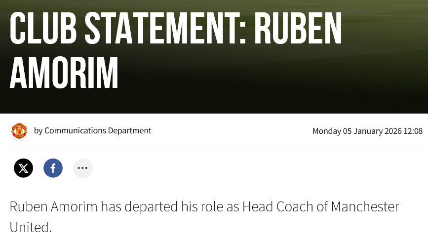 Ο Ρούμπεν Αμορίμ αποχώρησε από τη θέση του ως προπονητής της Μάντσεστερ Γιουνάιτεντ.