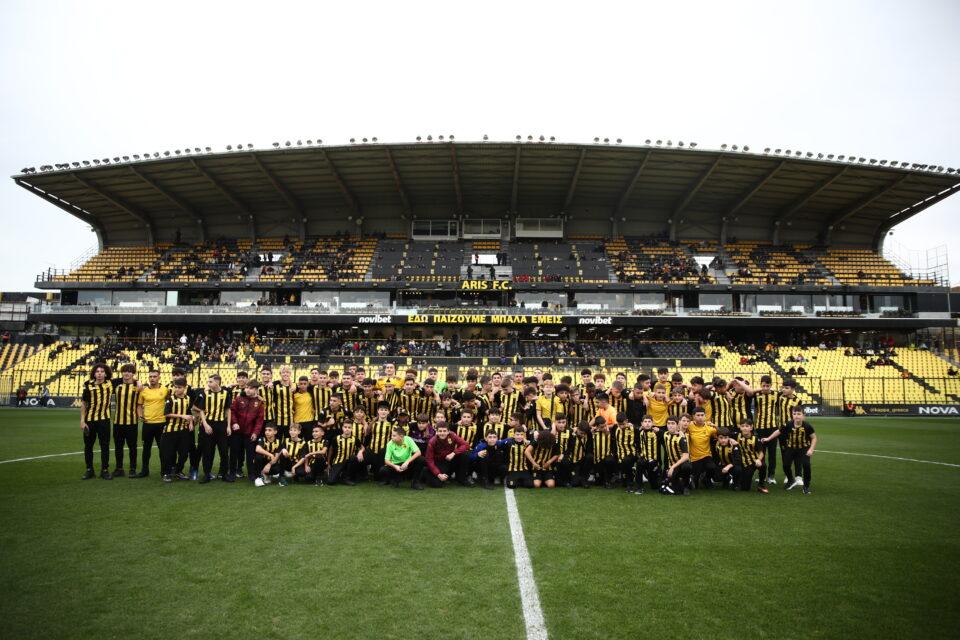 Πριν από τη σέντρα του αγώνα, 120 παιδιά από τις Ακαδημίες του Αρη στην Αθήνα (Κ11 έως Κ17) χαιρέτησαν τους φιλάθλους του Αρη και αποθεώθηκαν!
