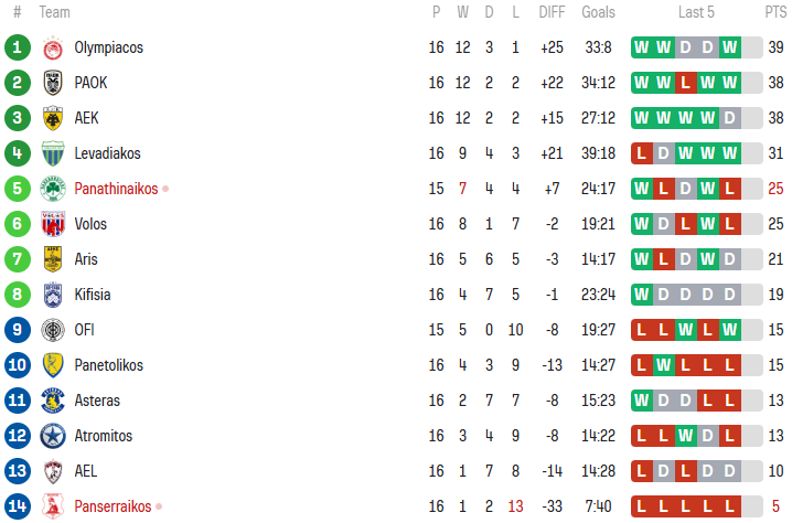 Οι Πειραιώτες επέστρεψαν στην πρώτη θέση, ενώ ακολουθεί ο ισόβαθμος την ΑΕΚ, ΠΑΟΚ.