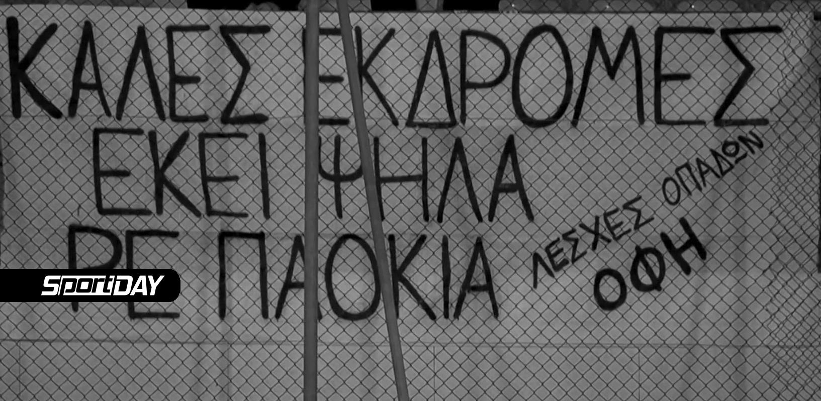 «Καλές εκδρομές εκεί ψηλά ρε ΠΑΟΚια» ανέφερε το πανό των Κρητικών, μέσα σε μία φορτισμένη ατμόσφαιρα.