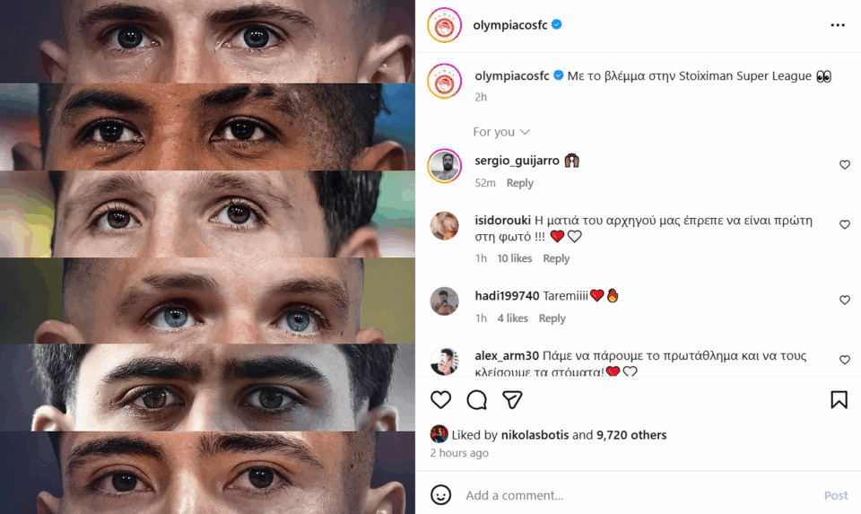 Οι άνθρωποι του Ολυμπιακού έστειλαν σαφές μήνυμα μέσα από ανάρτηση στα social media της ομάδας, όπου πρωταγωνιστούν τα μάτια των Κοστίνια, Ροντινέι, Ρέτσου, Πασχαλάκη, Σιπιόνι και Ορτέγκα.