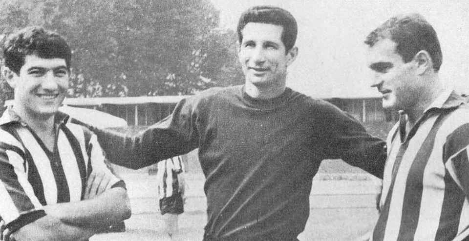 Ο Εριβέρτο Ερέρα υποδέχεται ως προπονητής της Γιουβέντους το 1966 τους νεοαποκτηθέντες Ερμίνιο Φαβάλι (αριστερά) και Βιρτζίνιο Ντε Πάολι, οι οποίοι αποτέλεσαν βασικά στελέχη στην πορεία προς το σκουντέτο (πηγή: Wikimedia Commons).
