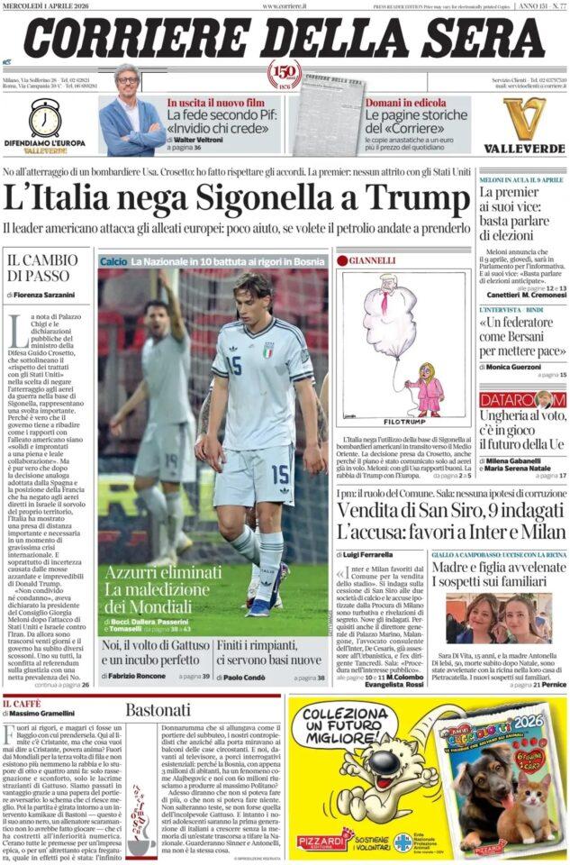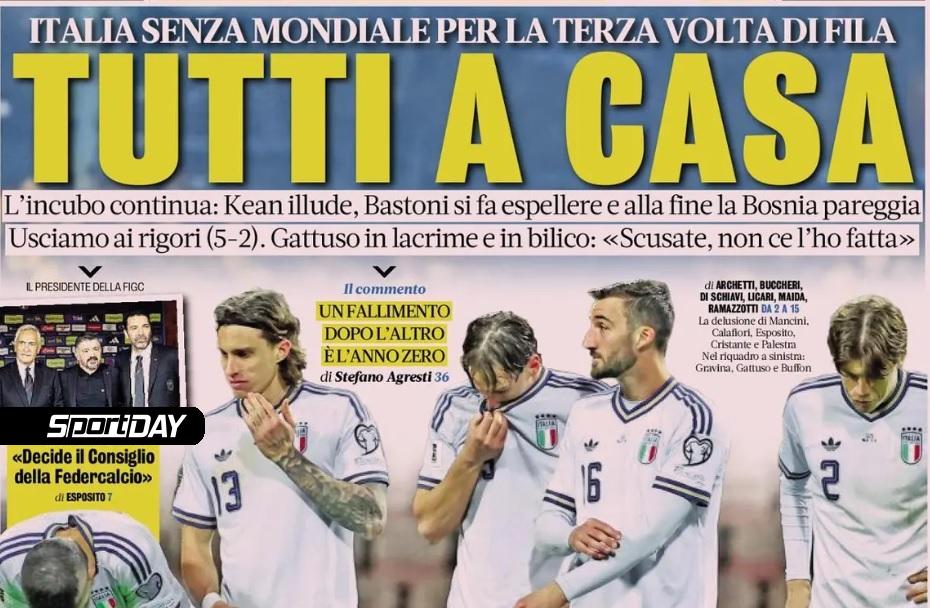 Η Ιταλία δεν προκρίθηκε στην τελική φάση του Μουντιάλ 2026 και σύσσωμος ο Τύπος της χώρας έδειξε την απογοήτευση του, όπως αποτυπώνεται στα πρωτοσέλιδα